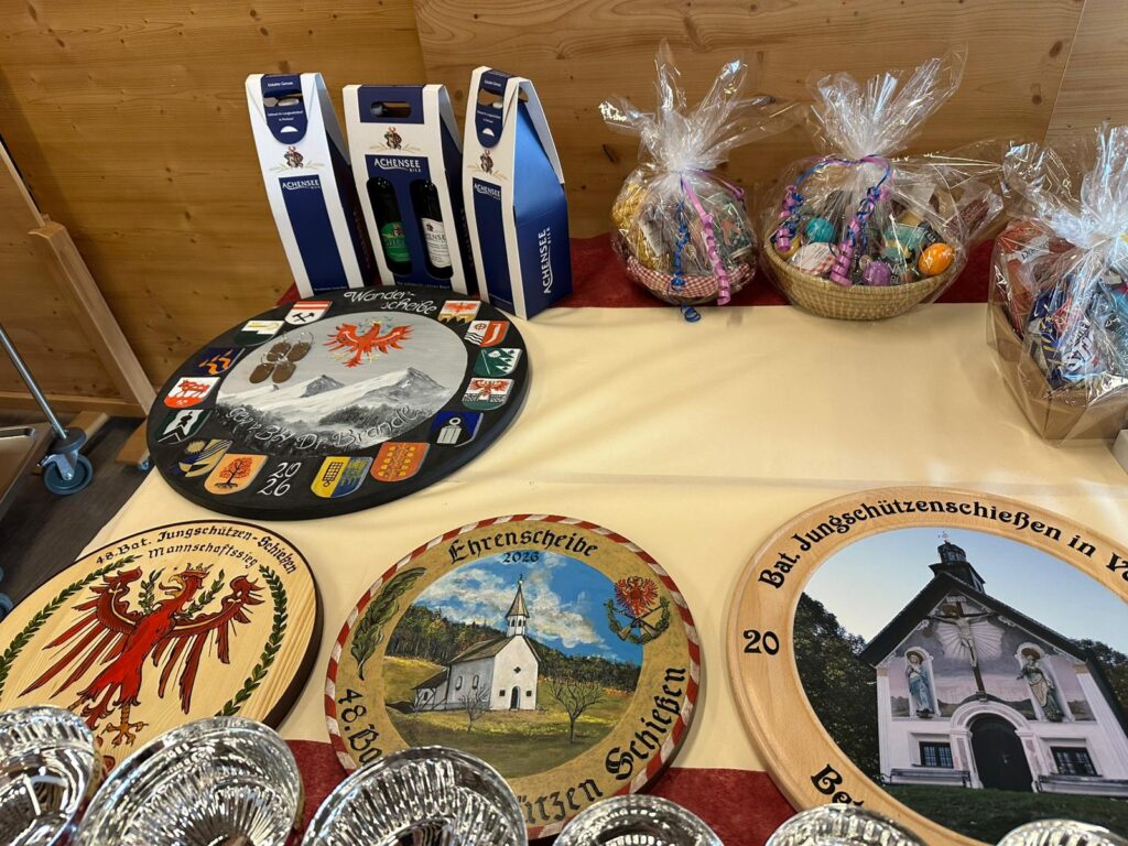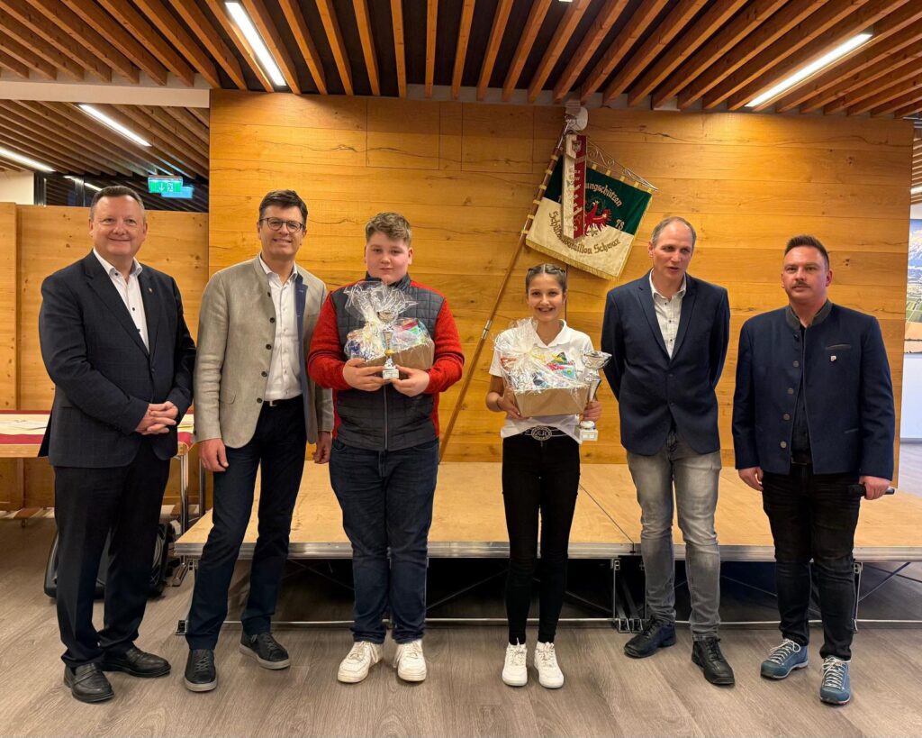 Ein Highlight der Preisverteilung war die Übergabe der Preise an die Jungschützen und Jungmarketenderinnen. Es bekam jedes teilgenommene Kind einen Preis. Gesamtsiegerin und somit gewürdigt mit der Jungschutzenkette wurde Jenewein Magdalena von der SK Weer mit 147 Ringen. Die Mannschaftswertung sicherte sich mit 30 Punkten Vorsprung die SK Vomp vor der SK Weerberg und der SK Weer. Die Ehrenscheibe ging an Peer Christian von der SK Vomp mit einem sensationellen Teiler von 0,0. Hinter ihm reihten sich Thomas Gürtler (5,0 Teiler) von der SK Eben Maurach und Andreas Garzaner von der SK Vomp (5,09 Teiler) ein. Die sehr starken Leistungen am