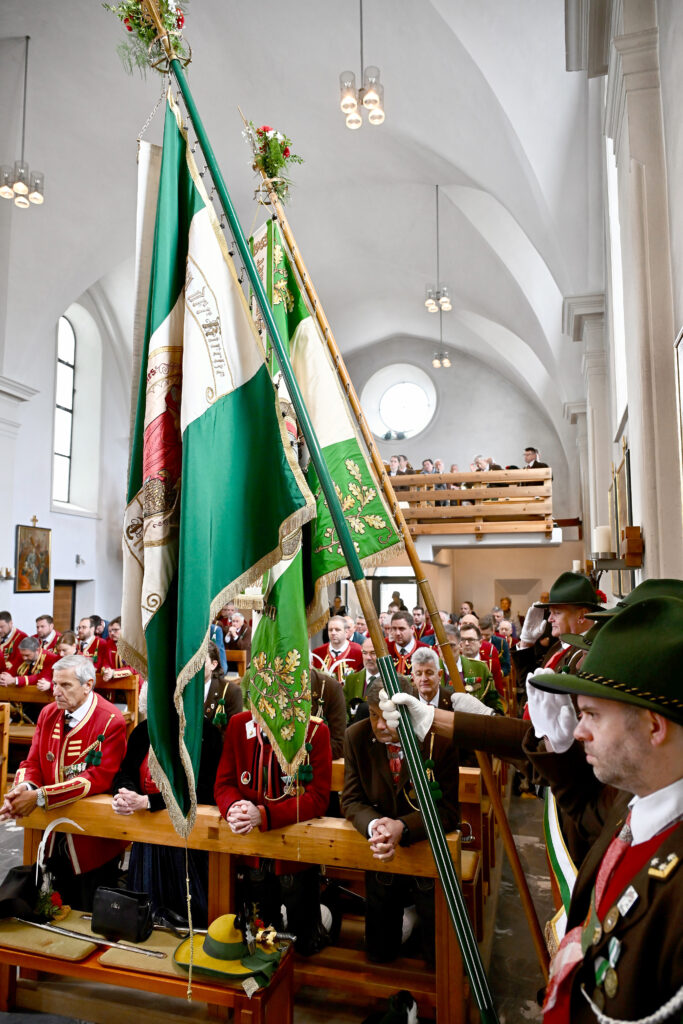 Die Bataillonsstandrate, Fahnenabordnung der SK Aldrans und den jeweiligen abgesandten Offizieren aus allen 14 Kompanien nahmen Aufstellung. Die Abschreitung der Front durfte von Viertelkommandant Major Thomas Zangerl gemeinsam mit dem Bürgermeister von Aldrans Johannes Strobl unter der musikalischen Begleitung von der Musikkappele Aldrans durchgeführt werden. Der gemeinsame Gottesdienst wurde in der Pfarrkirche Aldrans durch Dekan Dominik Jenewein zelebriert. Im Anschluss an die Hl. Messe fand die Aufstellung aller 14 Mitgliedskompanien am Senderweg statt, wo das traditionelle Schnaps’l an die Ehrengäste ausgeschenkt wurde, bevor die Versammlung im Geimeindesaal tagt.