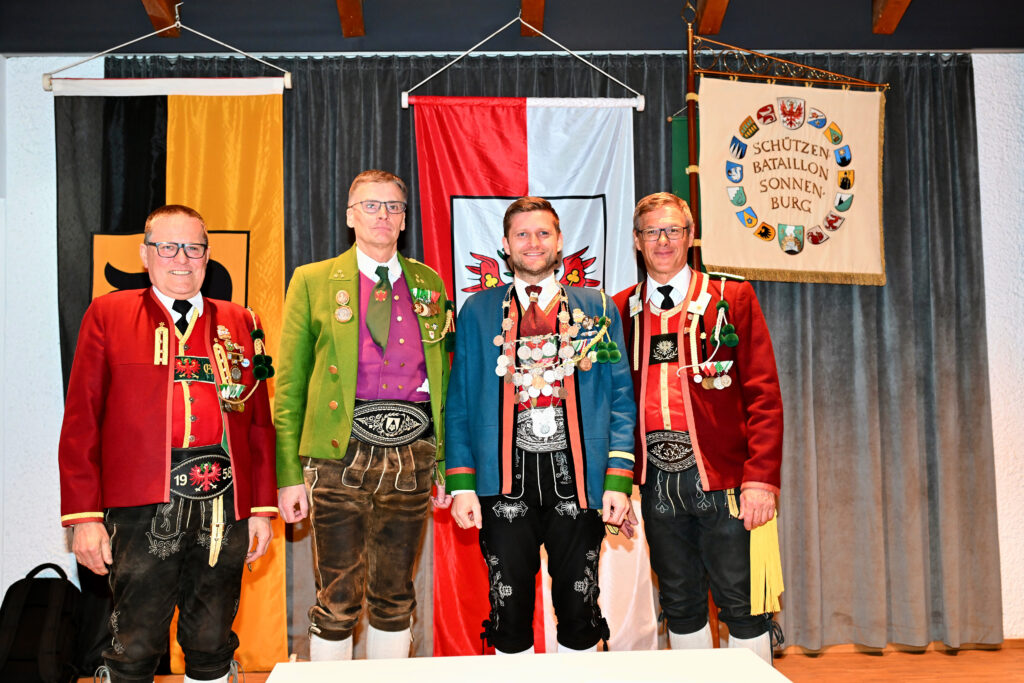 Die neue Führungsebene der Schützenkompanie Grinzens wurde der Vollversammlung vorgestellt. Aufgrund von gesundheitlichen Gründen legte der langjährige Hauptmann Helmut Brandner sein Amt zurück. Neuer Hauptmann ist Daniel Holzknecht und als neuer Oberleutnant wurde Matthias Schlögl gewählt.