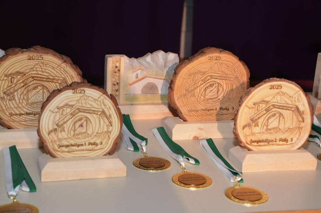 Die Siegerehrung fand im Veranstaltungssaal in Arzl statt, es gab für die Erstplatzierten (1-3 Platz) handgefertigte Preise mit dem Motiv der Jungschützenkapelle des Bataillon Innsbruck, deren 60 jähriges Jubiläum man 2025 feierte. Ein herzliches Vergelt´s Gott ergeht an Schütze Marco Buckovez, der die Hauptpreise unentgeltlich in mehreren Tagen hochwertig und eigenhändig geschnitzt hat. Zusätzlich gab es Sachpreise im Wert von fast € 600.-. Die würdigen Preise, die anwesenden Ehrengäste und die persönliche Übergabe der Preise durch Herrn Bürgermeister Johannes Anzengruber (Stadt Innsbruck) zeugten von der hohen Wertschätzung für die Jugendarbeit im Bunde der Tiroler Schützenkompanien.