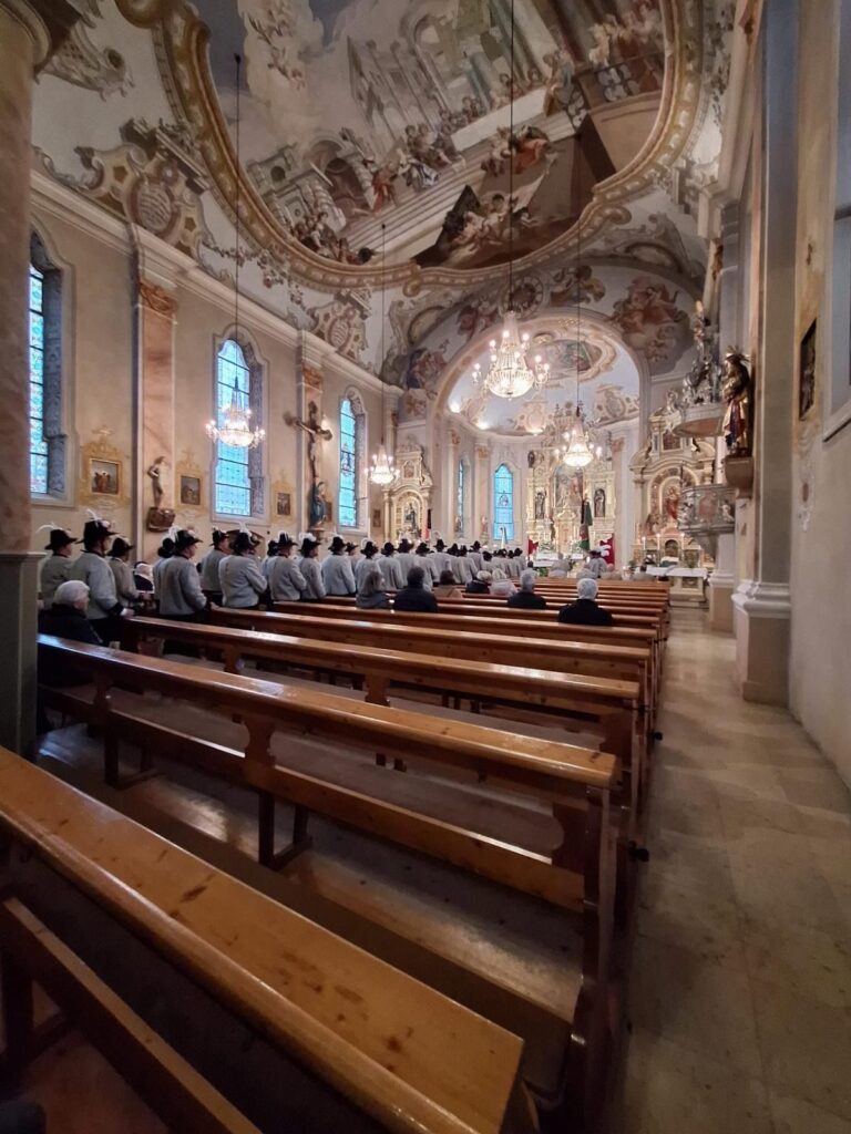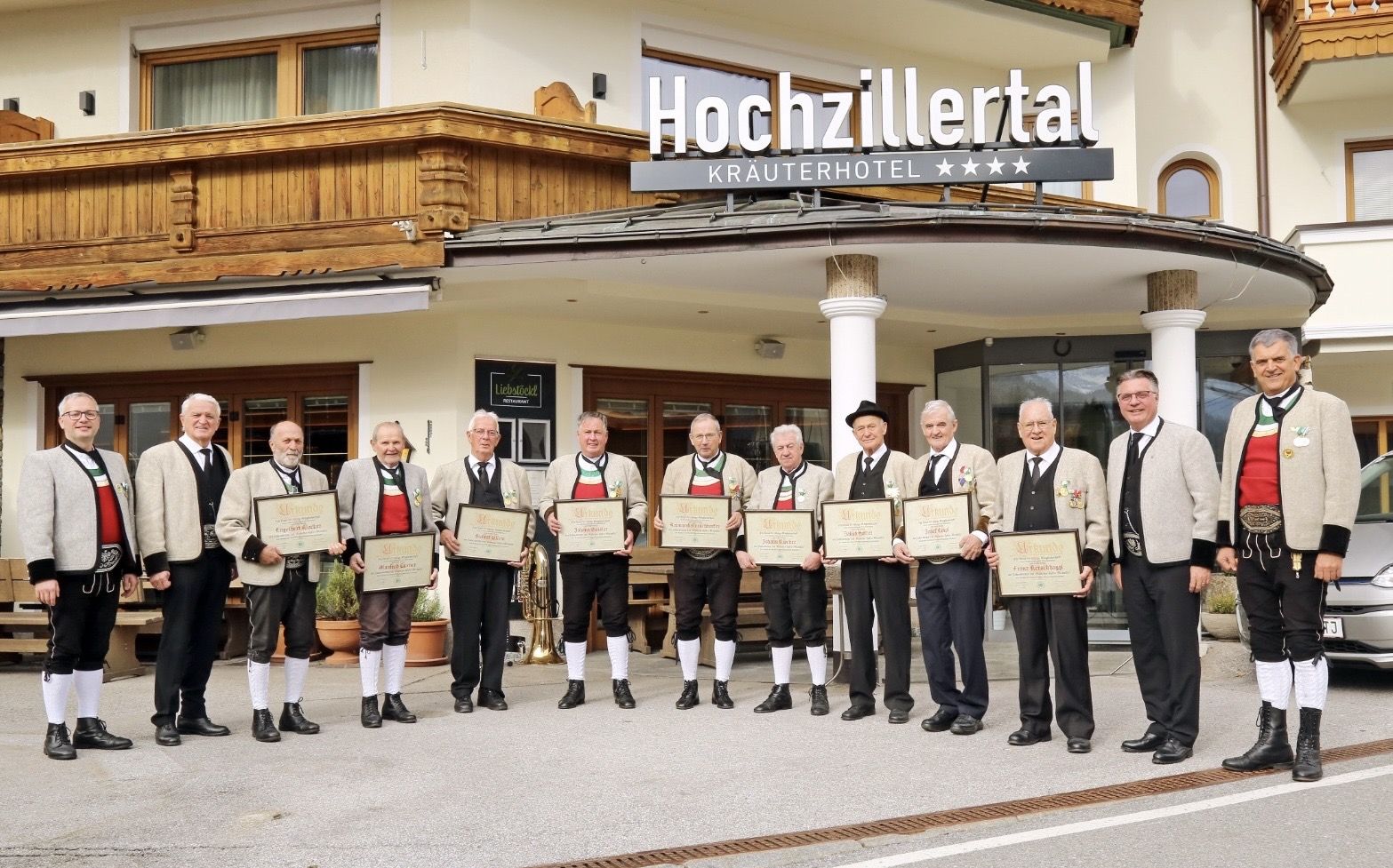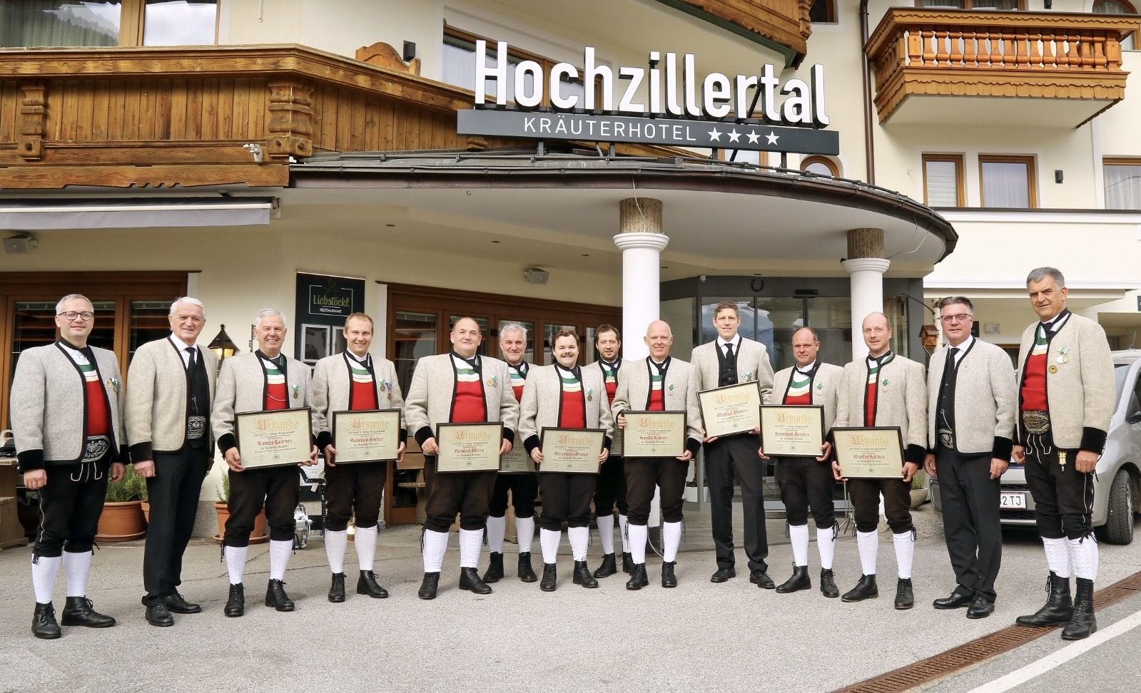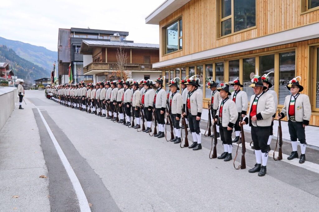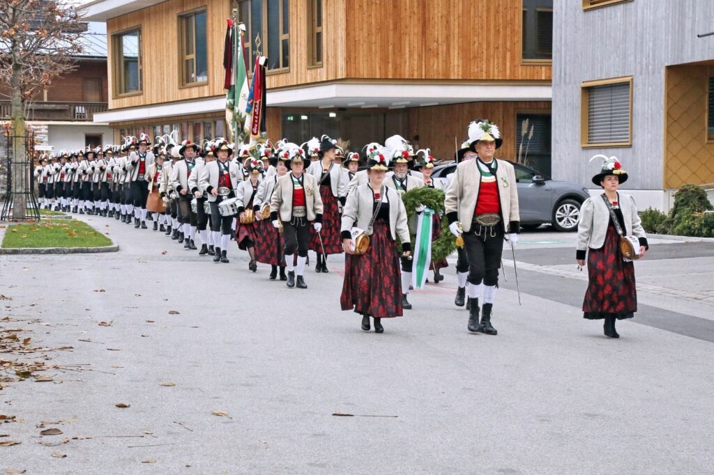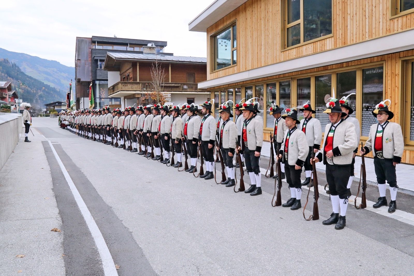Nach der heiligen Messe, feierlichst zelebriert von unserem HW Herrn Pfarrer Mag. Tobias Höck und beeindruckend musikalisch umrahmt von unserer Bundesmusikkapelle Ried-Kaltenbach, der Angelobung unserer neuen 7 Marketenderinnen und 20 Schützenkameraden, der Kranzniederlegung am Kriegerdenkmal, gewürdigt durch eine Ehrensalve für die Gefallenen beider Weltkriege und unserer verstorbenen Schützenkameraden, marschierte unsere schneidige, starke Kompanie zum Kräuterhotel HOCHZILLERTAL/LIEBSTÖCKL.