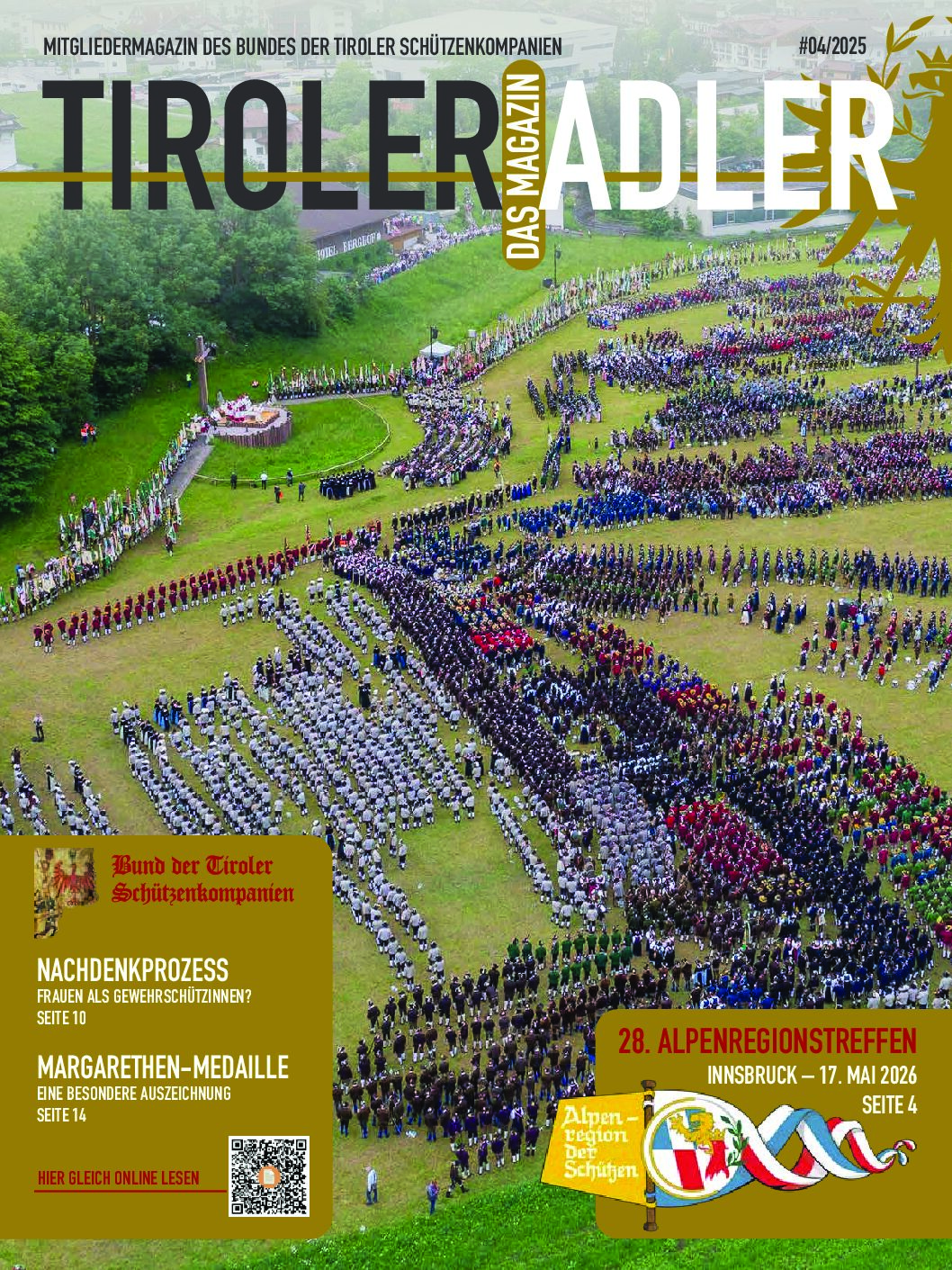 Mit dem „Tiroler Adler“ erscheint im März/April 2024 erstmals das neue Magazin des Bundes der Tiroler Schützenkompanien. Dieses Magazin ist ein wichtiger Teil der Kommunikation