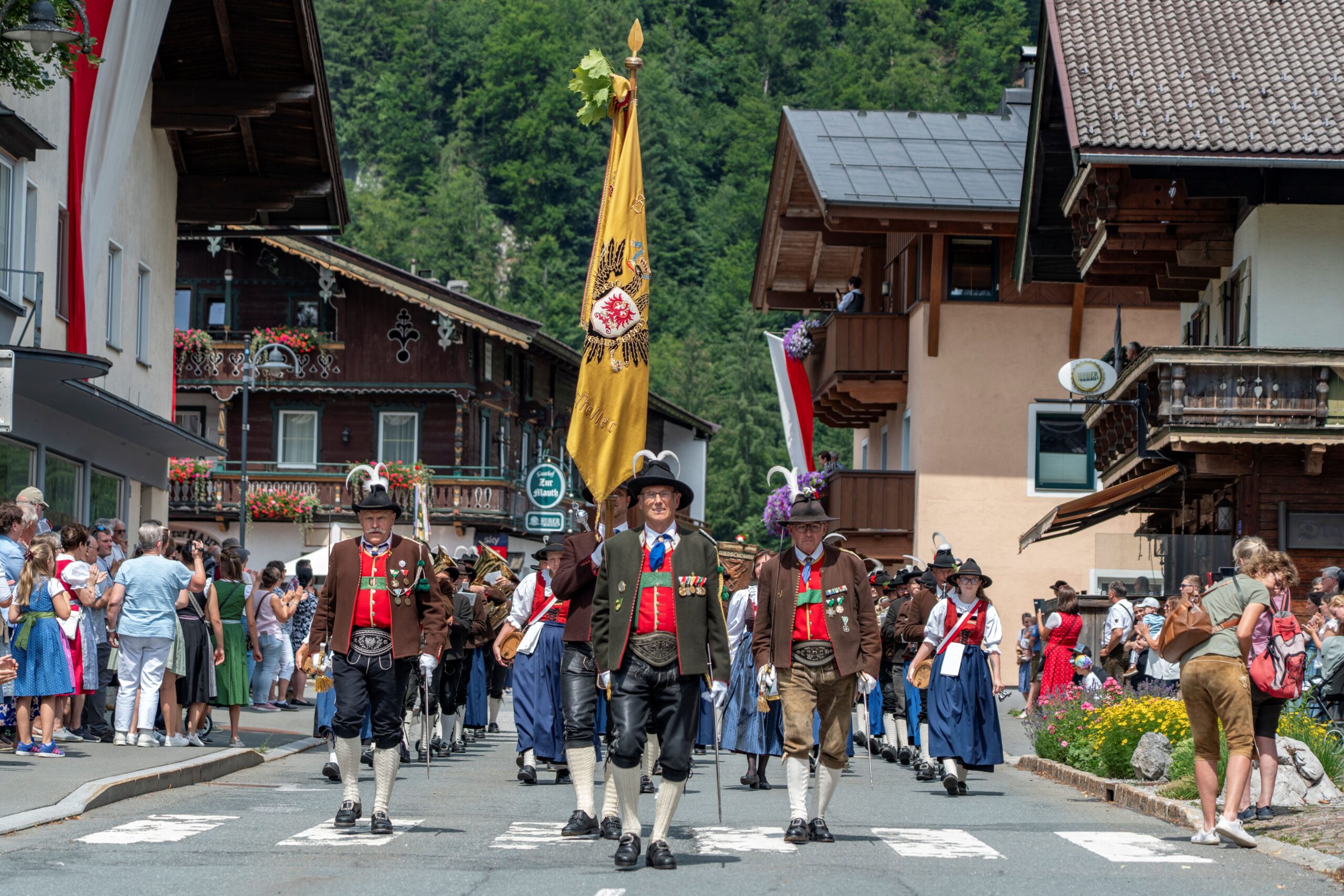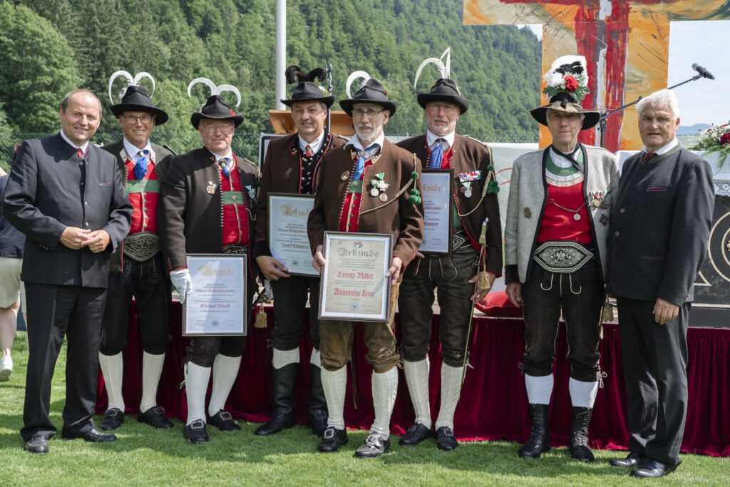 Der Sonntag bildete den feierlichen Höhepunkt: Auf dem Fußballplatz feierte die Schützenfamilie eine festliche Feldmesse mit der Ehrenkompanie Wildschönau. Im Anschluss ehrten Landeshauptmann-Stellvertreter Josef Geisler, Landeskommandant-Stellvertreter Major Gerhard Biller und Bataillonskommandant Major Hans Hinterholzer verdiente Mitglieder des Wintersteller-Bataillons für ihre langjährige Treue und Verdienste. Beim anschließenden Festumzug mit Defilierung vor der Pfarrkirche zeigten die Schützen, Musikkapellen und Fahnenabordnungen eindrucksvoll ihre Geschlossenheit.