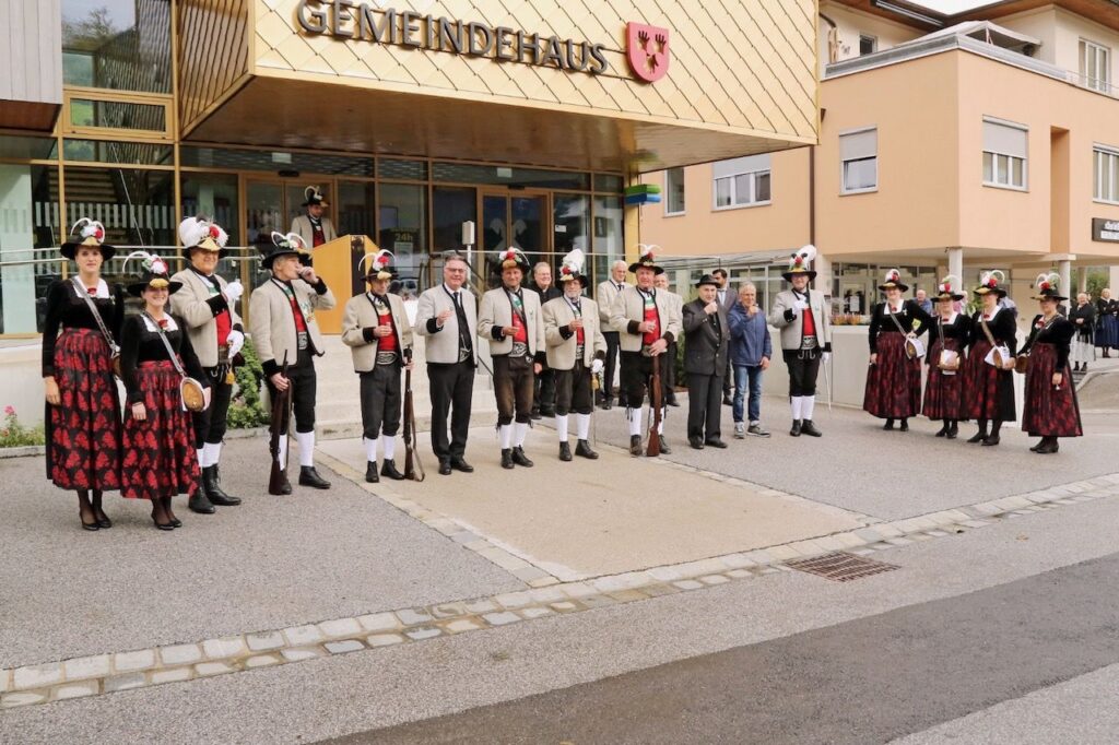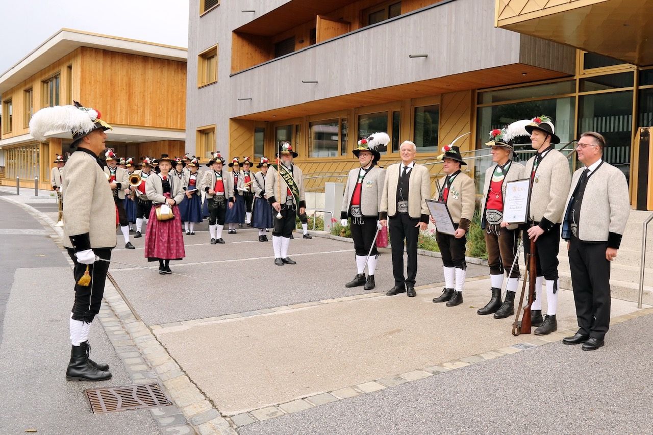 Beim anschließenden Festakt wurde den runden Geburtstagsjubilaren des vergangenen Schützenjahres mit einer feierlichen Ehrensalve gratuliert. Ein besonderer Moment galt unserer Ehrendame und Fahnenbandspenderin des diesjährigen Schützenregimentstreffens in Mayrhofen, Frau Christine DENGG, welcher wir mit einem Erinnerungsbild und einer Ehrensalve für Ihre ehrenvolle Aufgabe dankten.