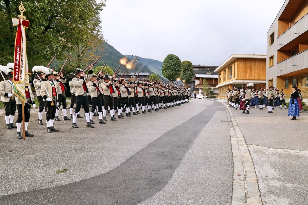 Ein Höhepunkt des Festes war die Auszeichnung zweier verdienter Schützenkameraden: Michael WIMPISSINGER (Hotel Platzlhof) und Michael PLATZER (Hotel Hochzillertal – Liebstöckl) wurden für ihr langjähriges und außerordentliches Wirken zum Wohle der Kompanie sowie des gesamten Tiroler Schützenwesens mit der „Bronzenen Verdienstmedaille des BTSK“ geehrt. Auch ihnen wurde mit einer Ehrensalve der Respekt und die Dankbarkeit der Gemeinschaft erwiesen.