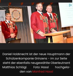 Daniel Holzknecht übernimmt wie erwähnt das Amt des Hauptmannes. Zum neuen Oberleutnant wurde Matthias Schlögl bestellt. Thomas Wegscheider wird künftig die Funktion des Kassiers von Daniel Holzknecht übernehmen. Eine persönliche Anmerkung sei erlaubt: Wenn es in dieser Tradition weitergeht, wird der nächste Hauptmann der Schützenkompanie Grinzens frühestens im Jahr 2050 gewählt …