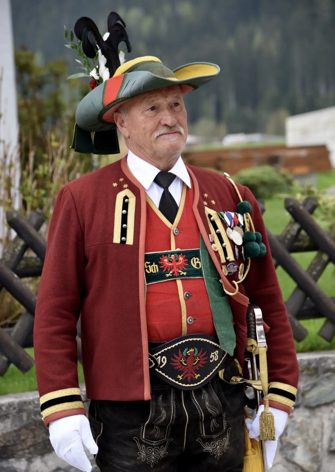 … und unermüdlichem Einsatz prägte Hauptmann Helmut Brandner über Jahrzehnte hinweg das Wirken der Schützenkompanie Grinzens. Im Jahr 1973 trat er im Alter von 20 Jahren als Gewehrschütze in die Kompanie ein und legte damit den Grundstein für eine außergewöhnliche Schützenlaufbahn. Anfang der 1980erJahre wurde er zum Fähnrich befördert, ehe er von 1994 bis 2002 als Oberleutnant Verantwortung übernahm. „Seit dem Jahr 2002 stand er schließlich als Hauptmann an der Spitze der Kompanie und führte diese mit großem Pflichtbewusstsein, Stolz und kameradschaftlichem Geist bis ins Jahr 2026,“ hält Obmann Hans-Peter Nagl fest.