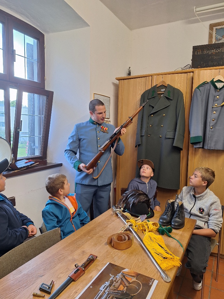 Wir starteten mit Herrn Gottfried Winkler die Stadtführung beim Kloster in Schwaz, danach ging es weiter mit dem Hauptmann der Kaiserjäger Herrn Michael Danler der mit uns eine Führung durch das Schwazer Kaiserjägermuseum abhielt. Die Burschen folgten den historischen Darstellungen sehr interessiert und waren begeistert über die Geschichte der Kaiserjäger und den Tiroler Schützen.