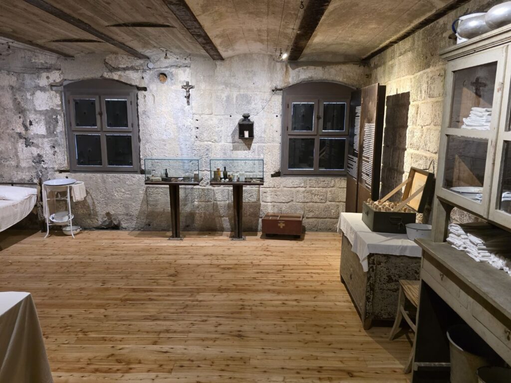 Am darauffolgenden Tag stand mit der Besichtigung des Werkes Gschwent, von den Italienern als Forte Belvedere bezeichnet, ein weiterer Höhepunkt auf dem Programm. Die Festungsanlage bei Lavarone zählt zu den größten und am besten erhaltenen Sperrwerken des Trentinos aus der Zeit der österreichisch-ungarischen Monarchie. Errichtet zwischen 1909 und 1912, vermittelt sie bis heute einen eindrucksvollen Einblick in die militärische Architektur und Geschichte jener Zeit.